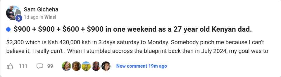 Comes with a one of the kind community where you will learn from some of the best digital marketers on how to have multiple income streams!